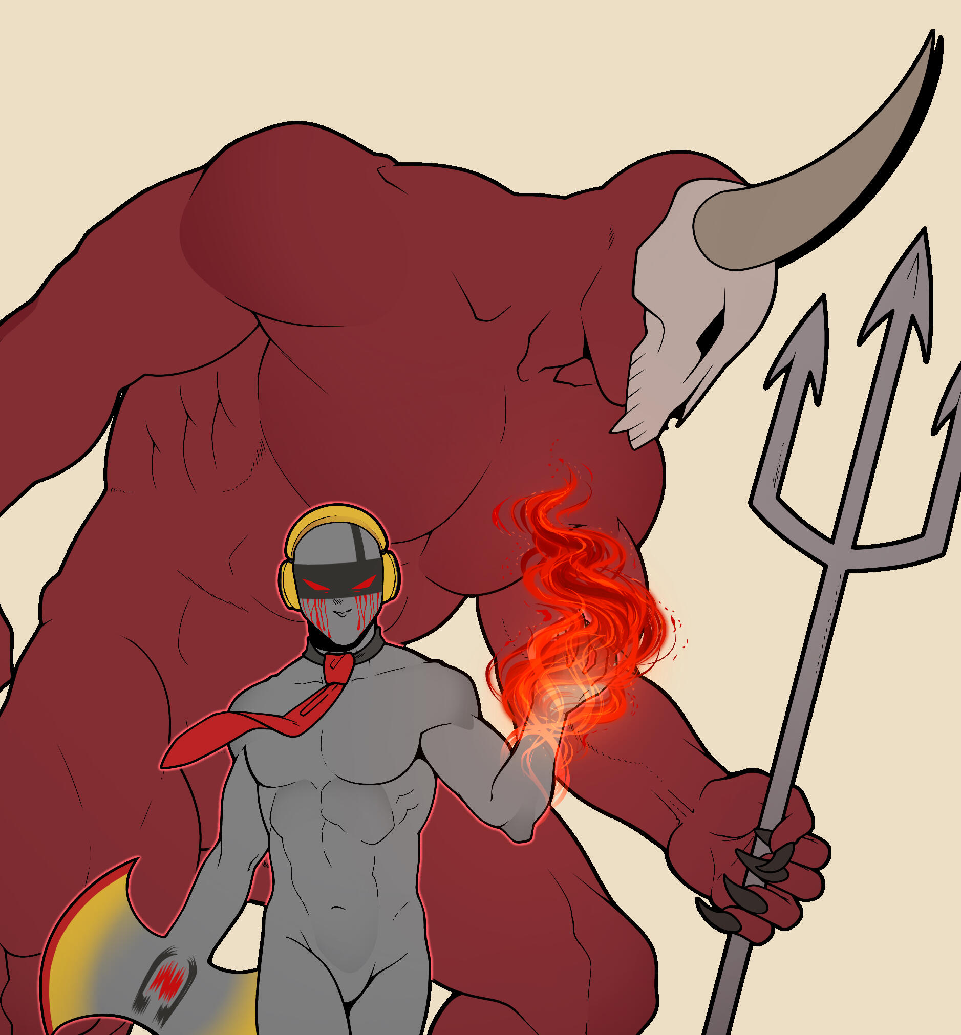 Tim is mysterious and often very soft-spoken; he barely speaks. A tall and imposing Greater Demon that seems to follow Deaf everywhere. To the uninitiated in the realms of hell, that’s all it appears to be. However, Tim and Deaf hold a complex relationship; Tim is the Auditor of Deaf's entire business venture, making sure he does not cross any lines he shouldn’t be crossing, making sure Deaf stays in good graces with those running the underworld. However, behind closed doors, Deaf and Tim are the best of friends, and one could say they are brothers.
